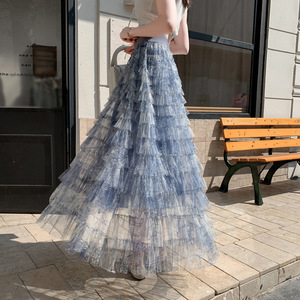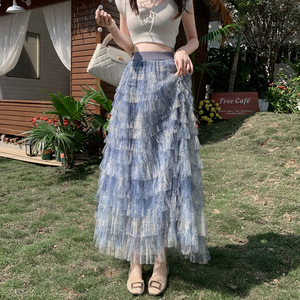 ブルーメッシュケーキスカートレディース夏新スタイル美しいスーパーフェアリーaラインガーゼスカートフレンチスタイルチュチュスカートクロスボーダー4色