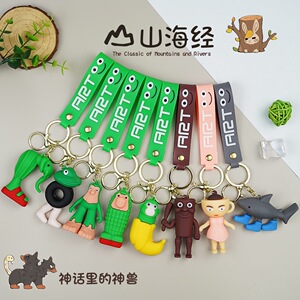 国境を越えた人気の小さな接着剤ペンダント、山と海の経典キーホルダー、面白い抽象的な動物、木の棒、靴を履いた人、サメ人形