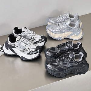 2025年新作 ランサーベルト ダッドシューズ おしゃれ 厚底 身長アップシューズ メッシュ カジュアル 万能スニーカー カップル同型