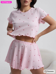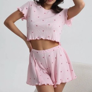 クロスボーダー 2025 外国貿易レディースホームウェアパジャマ Temu クロスボーダー特別供給弾性小さな愛波状エッジ 2 点セット