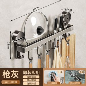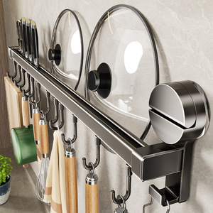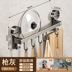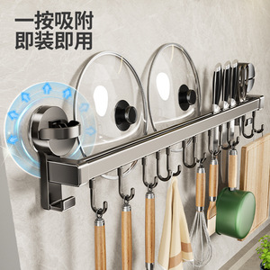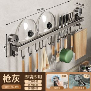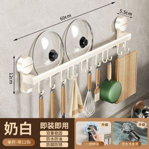 キッチン収納ラックフック吸盤パンチフリーハンギングロッドスパチュラスプーンハンガーナイフホルダー多機能収納ラック壁掛け