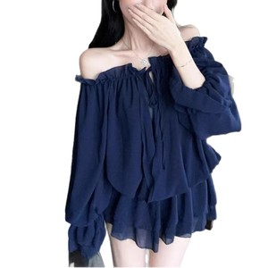 花びらレイヤード巾着シフォンシャツ女性のための 2025 夏の新しいフレンチスタイルスリムワンショルダーメッシュトップ