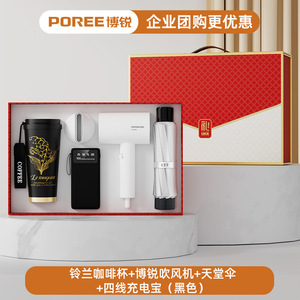 スズラン コーヒーカップ + ボルイ ヘアドライヤー + パラダイス アンブレラ + 4 線式モバイルバッテリー (ブラック)