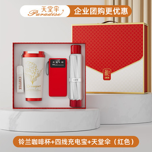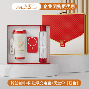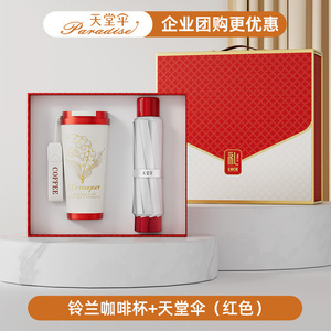 スズラン コーヒーカップ + 磁気モバイルバッテリー + パラダイスアンブレラ (レッド)