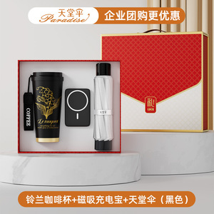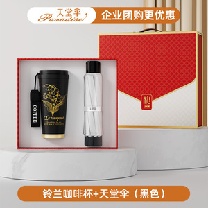 スズラン コーヒーカップ + 磁気モバイルバッテリー + パラダイスアンブレラ (ブラック)