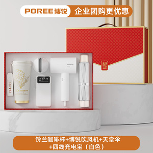 スズラン コーヒーカップ + ボルイ ヘアドライヤー + パラダイス アンブレラ + 4 線式モバイルバッテリー (ホワイト)