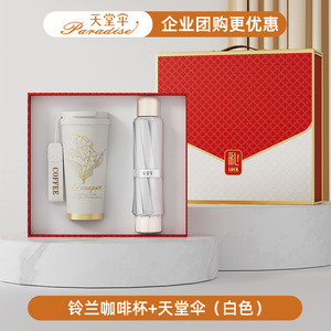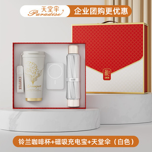 スズラン コーヒーカップ + 磁気モバイルバッテリー + パラダイスアンブレラ (ホワイト)