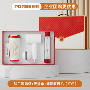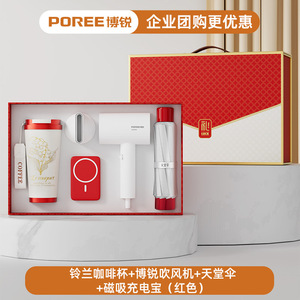 スズラン コーヒーカップ + ボルイ ヘアドライヤー + パラダイス アンブレラ + 磁気モバイルバッテリー (レッド)