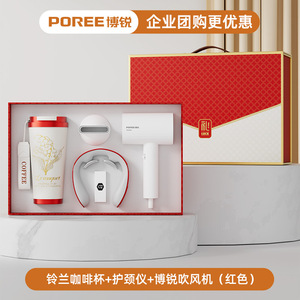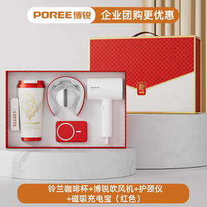 スズラン コーヒーカップ + ボルイ ヘアドライヤー + ネックガード + 磁気モバイルバッテリー (レッド)