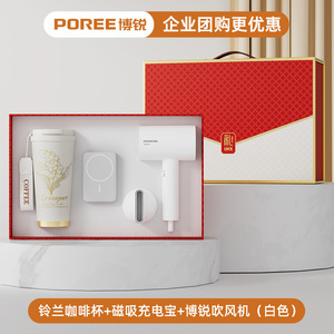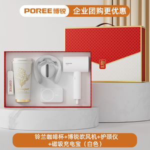 スズラン コーヒーカップ + ボルイ ヘアドライヤー + ネックガード + 磁気モバイルバッテリー (ホワイト)