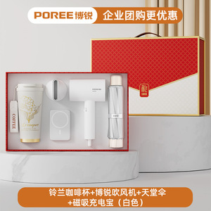 スズラン コーヒーカップ + ボルイ ヘアドライヤー + パラダイス アンブレラ + 磁気モバイルバッテリー (ホワイト)