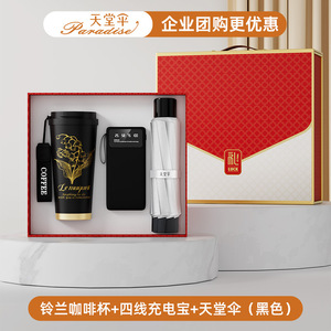 スズラン コーヒーカップ + 4 線式モバイルバッテリー + パラダイスアンブレラ (ブラック)