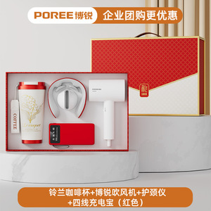 スズラン コーヒーカップ + ボルイ ヘアドライヤー + ネックガード + 4 線式モバイルバッテリー (レッド)