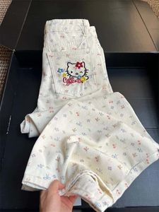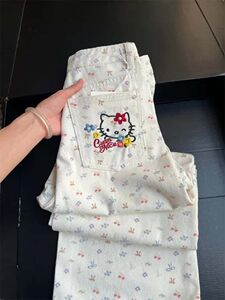オリジナルデザイン kt キャットジーンズ女性のための春の新しいハイウエストストレートルーズスリム多用途ワイドレッグフロアレングスパンツ