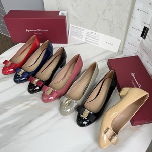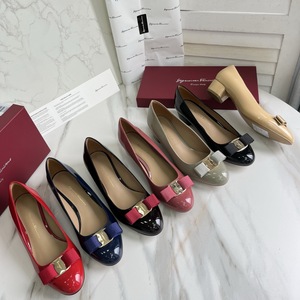 Feila SF フラット交換多用途クラシックスタイルファッショナブルな浅い口ラウンドトゥリボンパテントレザーミディアムヒール気質太いヒールシングルシューズ女性用