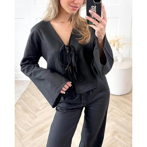 国境を越えたヨーロッパとアメリカの衣類INSインターネットセレブ売れ筋ディープVフレアスリーブストラップトップス-速達在庫あり、安全に販売可能