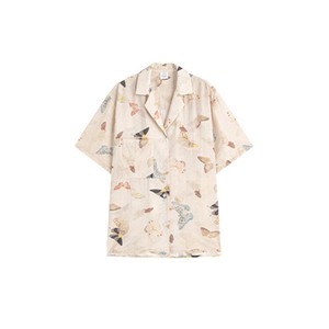 万有引力博物馆 复古满印短袖衬衫女夏季2025年新款衬衣宽松上衣