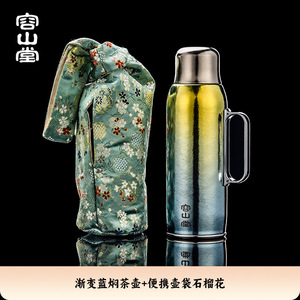 グラデーションブルー煮込み急須+ポータブルポットバッグザクロの花