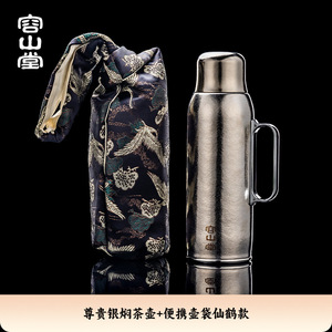 高貴な銀の煮込み急須+携帯用ポットバッグ鶴風