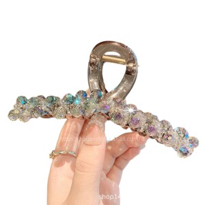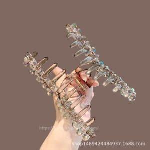 2025 新しいライト高級クリスタルグリッターネットレッドラインストーンサメクリップ韓国スタイルの大きな髪の量後頭部ヘアグリッターレディース