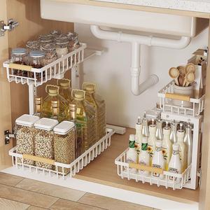 キッチンシンク下の棚、床から天井までの調節可能なキャビネット、シンク下のバスケット、家庭用カウンタートップ調味料収納