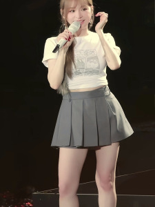 Cyndi Wangと同じスタイルのイレギュラースーツスカート、ショートスカート、プリーツAラインスカート、肉感をカバーし、着痩せ効果のあるハイウエストヒップスカート