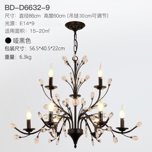 ヨーロッパの田舎の別荘の客間の明かりの経典のろうそくの水晶の寝室のレストランの復古する黒色の装飾のアメリカ式のシャンデリア