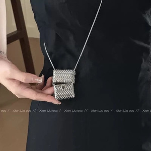 中古織バッグペンダントロングネックレスレディースハイエンドニッチエクストラロングセーターチェーンロングファットマンホルターネックジュエリー