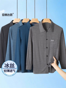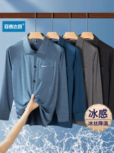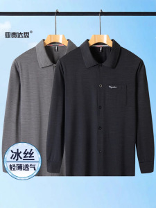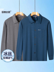 お父さん夏アイスシルク速乾長袖カーディガン中高年男性Tシャツ薄手おじいちゃんシャツ日焼け止めトップス