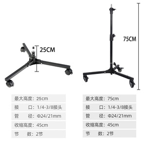 25/75 センチメートル写真撮影フロアライトスタンドモバイル三脚金属プーリーブレーキブラケット折りたたみヘビーデューティフロアライトスタンド