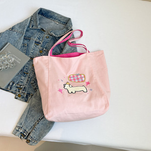 カラフルなドーパミン両面ショッピングバッグ布バッグ 2025 新しい刺繍多用途大容量軽量ショルダーバッグ女性のための