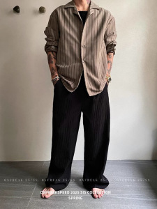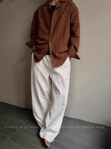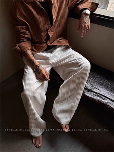 テクスチャード薄い白パンツメンズ夏怠惰なオールドマネースタイルカジュアルパンツトレンディなブランドルーズワイドレッグパンツ