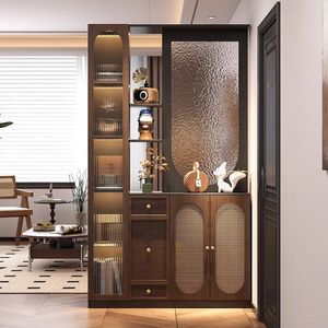 新しい玄関キャビネットと靴キャビネット一体型中世スタイルの家庭用小型両面ガラススクリーンパーティションキャビネット