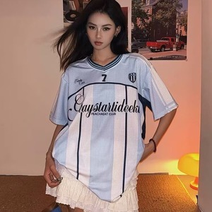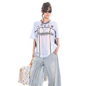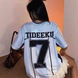 夏の新しいスポーツサッカーユニフォーム半袖TシャツアイスホッケーユニフォームカップルウェアメッシュプリントコントラストカラーステッチTシャツトレンディなブランド