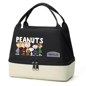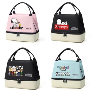 新しいコントラストカラースヌーピープリント二層断熱バッグアイスバッグお出かけランチバッグ