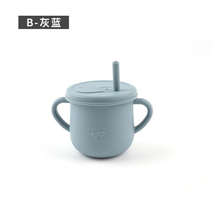 食品グレードの子供用シリコンストローカップ、落下防止ウォーターカップ、ベビー両耳シリコンウォーターカップ、シリコン学習ドリンクカップ