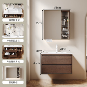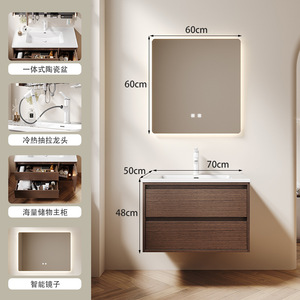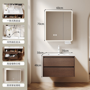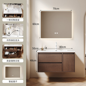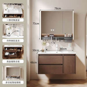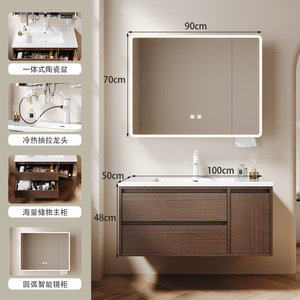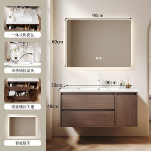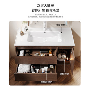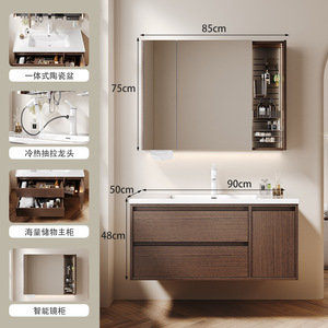 多層無垢材のバスルームキャビネットセラミック一体型洗面器アンティークスタイルの洗面台キャビネット組み合わせ多機能ミラーキャビネット洗面台
