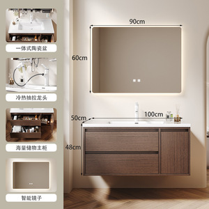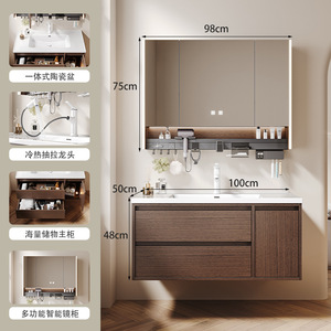 100CM スマートミラーキャビネット [無垢材ミラーキャビネット]