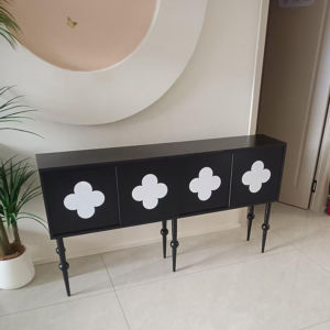 玄関キャビネット超狭いフレンチレトロブラック廊下エンドキャビネット通路アンティークスタイル四つ葉のクローバー装飾キャビネットリビングルーム