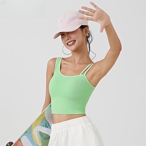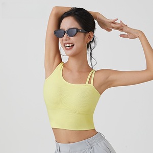 高强度固定一体杯运动内衣女防震不对称肩带外穿瑜伽背心健身文胸