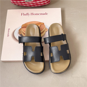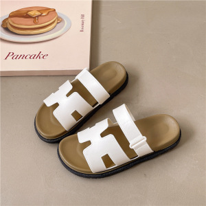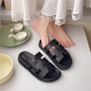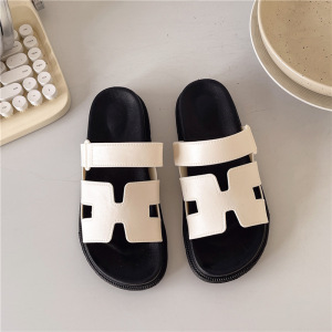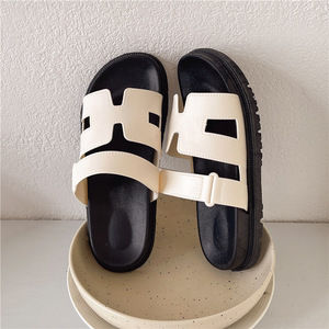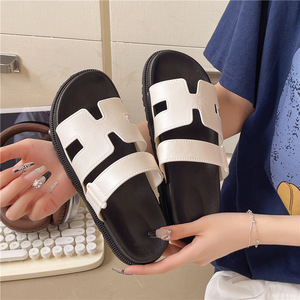 跨境2025夏季新款时尚凉鞋H字纯美贴休闲厚底二舅拖鞋女凉拖外穿