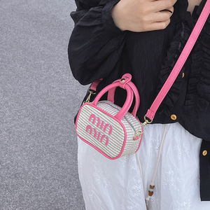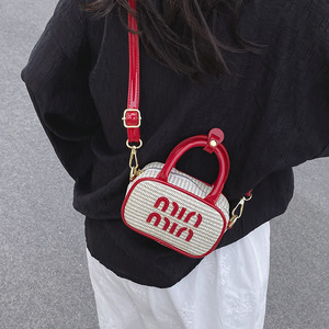 わら文字ボウリングバッグポータブルミニレディースバッグ 2025 夏の新ニッチ通勤子供のクロスボディバッグトレンディ