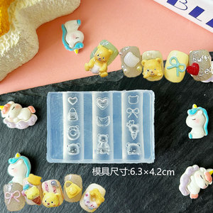 高透明遊園地トロイの木馬バニーリボンクマレリーフ漫画ネイルアート装飾金型 DIY 接着剤金型