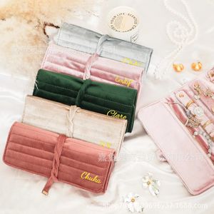 国境を越えて人気のベルベットジュエリーロールバッグ、多機能イヤリングネックレスジュエリーバッグ、ウェディングベルベットジュエリーロールバッグ