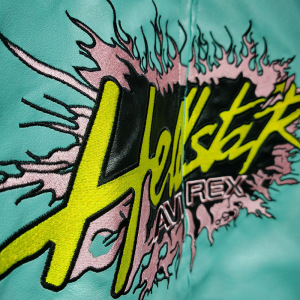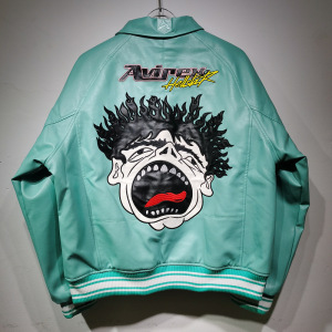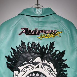 アビレックス共同50周年記念限定レトロトレンドジャケット バイク刺繍レザージャケット Hellstar