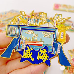 山東省青島市、威海市、大連市、瀋陽市、済南市の金属製冷蔵庫用マグネット、文化的で創造的な小さなギフト、観光記念品