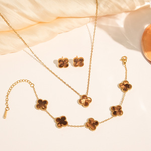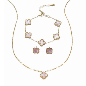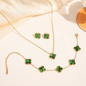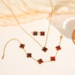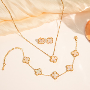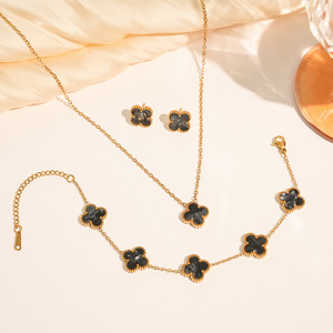 チタン鋼非退色両面四つ葉の花セットネックレス女性のファッション気質ライト高級インターネット有名人鎖骨チェーンブレスレット卸売
