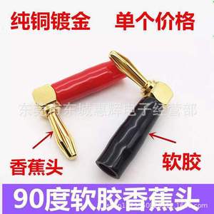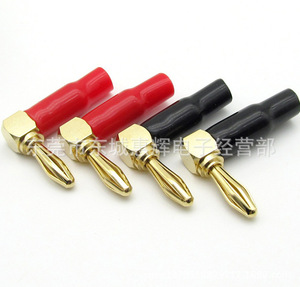 直販純銅金メッキ4mm軟質ゴム6枚羽L字型バナナプラグ曲げ90度スピーカー配線スピーカープラグ