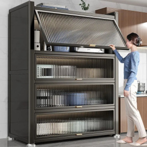 厚みのあるキッチン収納ラック床置き多層キャビネット家庭用電子レンジ食器棚サイドボード廊下収納キャビネットドア外