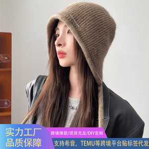 女性用の秋と冬の帽子、ファッショナブルで多用途なニットウール帽子、無地の多用途なウサギの毛皮の暖かい耳保護帽子、大きな頭囲の防寒帽子
